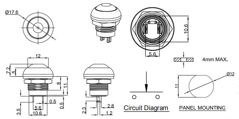 6. 防水按鍵開關PB12-2-M-RB-N