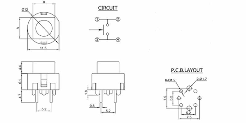 7. 輕觸按鍵開關(guān)TS4-1-G 輕觸按鍵開關(guān)TS4-1-G
